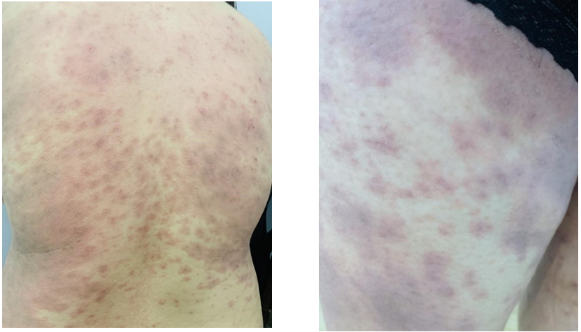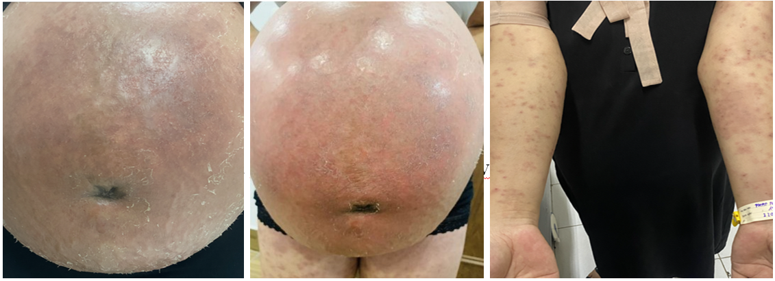 Hình 1. Tổn thương da vùng lưng và đùi của bệnh nhân.